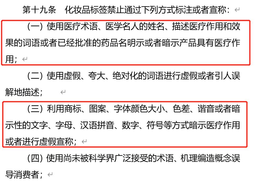 “这给企业敲响了警钟,备案要注意类似情况,避免图案误导消费者。”上述资深法规人士举例,产品包装要慎用“太阳”、“雨伞”等图案,涉嫌暗示普通化妆品有防晒功效;产品包装上的瘦腰、V脸图案,有暗示美体塑形的嫌疑。